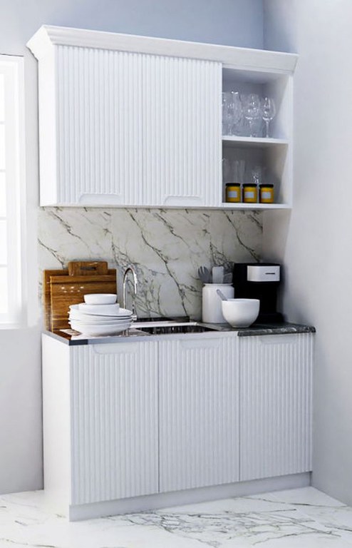 Set bucatarie SPACE 120 cm, 2 corpuri, blat termorezistent, fronturi MDF, alb antichizat