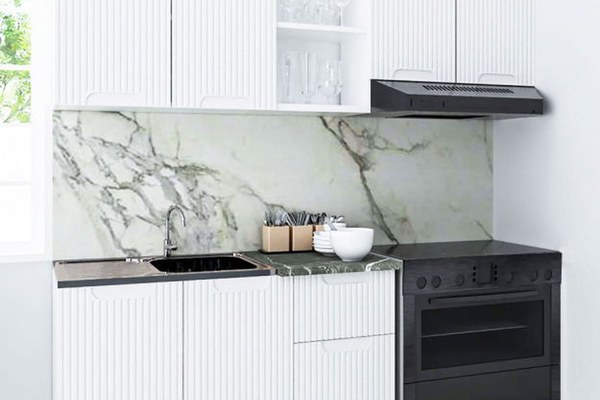 Set bucatarie SPACE 180 cm, 3 corpuri, blat termorezistent, fronturi MDF, alb rustic