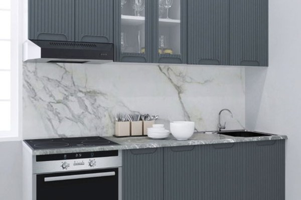Set bucatarie SPACE 200 cm, 6 corpuri, corp cuptor, blat termorezistent, fronturi MDF, antracit