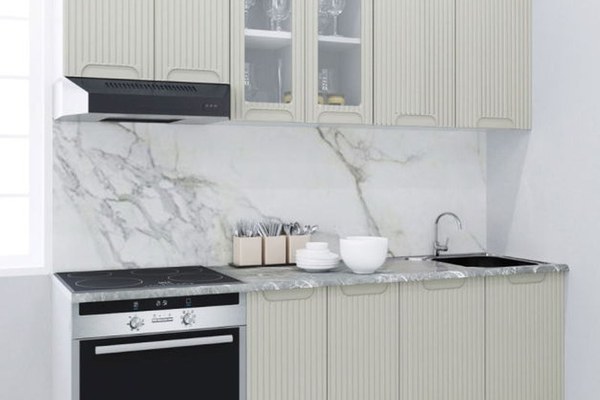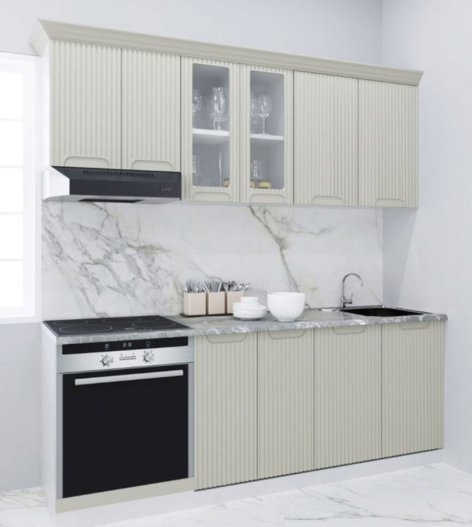 Set bucatarie SPACE 200 cm, 6 corpuri, corp cuptor, blat termorezistent, fronturi MDF, crem