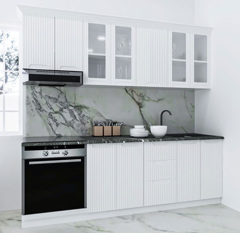 Set bucatarie SPACE 220 cm, 8 corpuri, blat termorezistent, fronturi MDF, alb rustic