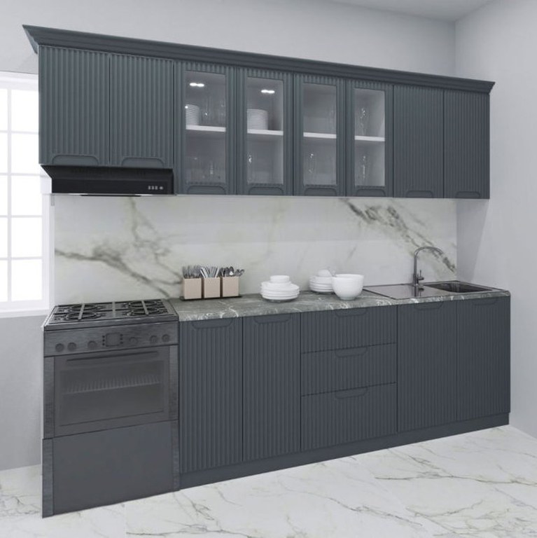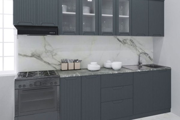 Set bucatarie SPACE 260 cm, 7 corpuri, cu sertare, blat termorezistent, fronturi MDF, antracit