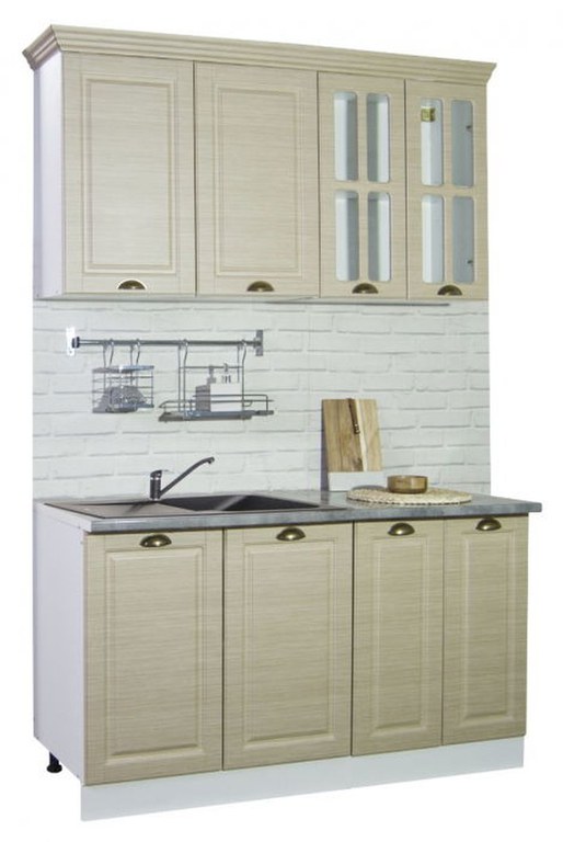 Setul conține: 1 x Corp inferior 60 cm 2 uși 1 x Corp inferior 80 cm 2 uși 1 x Corp suspendat 80 cm 2 uși 1 x Corp superior 60 cm 2 uși cu sticlă Blatul termorezistent are grosime de 28 mm si este compus din 2 bucati: 80 cm + 60 cm Coroana...