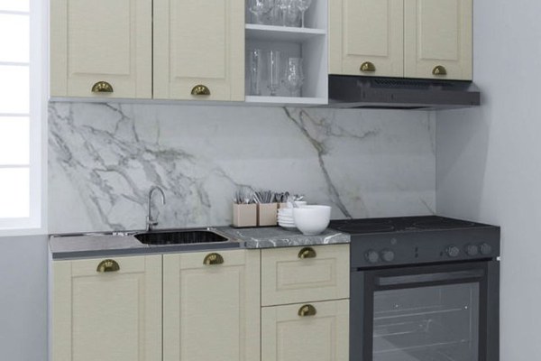 Set bucatarie SQUARE 180 cm, 3 corpuri, blat termorezistent, fronturi MDF, fag