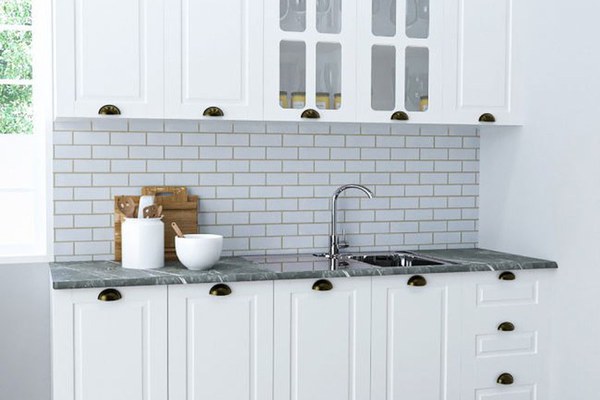 Set bucatarie SQUARE 200 cm, 6 corpuri, blat termorezistent, fronturi MDF, alb rustic