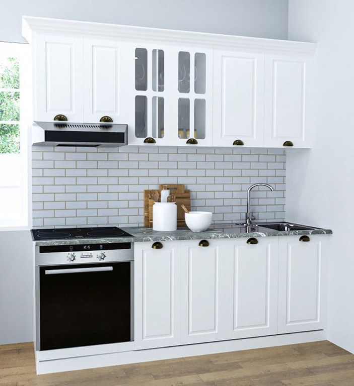 Set bucatarie SQUARE 200 cm, 6 corpuri, corp cuptor, blat termorezistent, fronturi MDF, alb rustic
