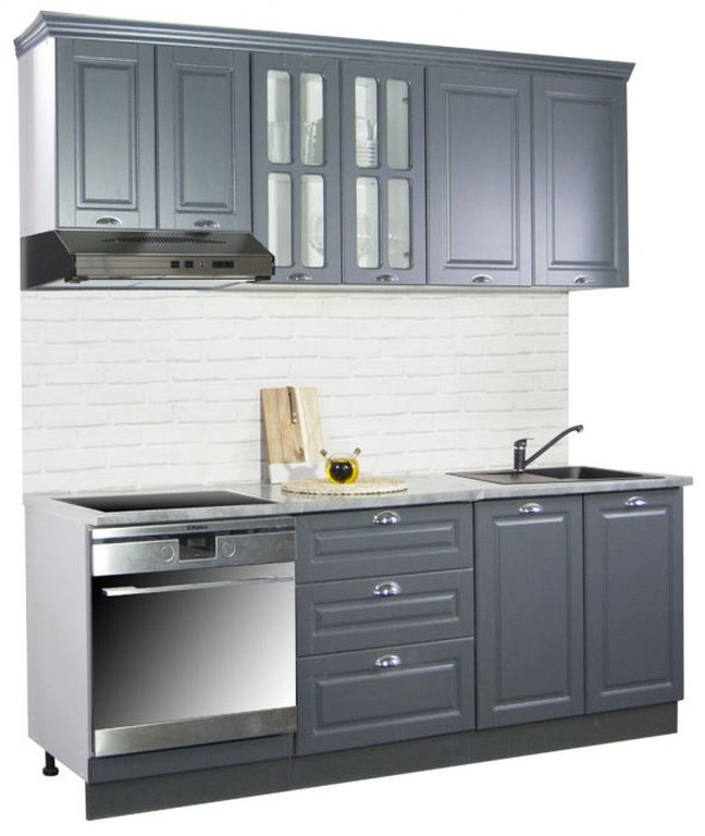 Set bucatarie SQUARE 200 cm, 6 corpuri, corp cuptor, blat termorezistent, fronturi MDF, antracit
