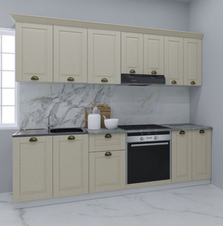 Set bucatarie SQUARE 240 cm, 8 corpuri, corp cuptor, blat termorezistent, fronturi MDF, fag