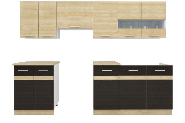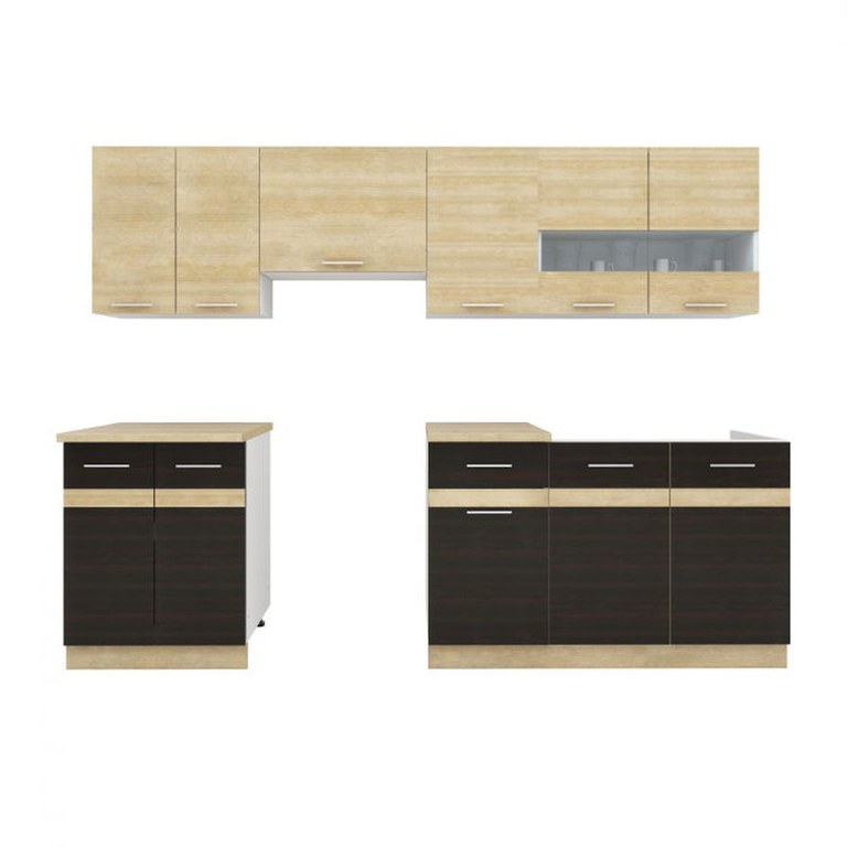 Set Bucatarie YANA, L 240, 7 corpuri, blat termorezistent, corp alb, fronturi sonoma inchis + deschis