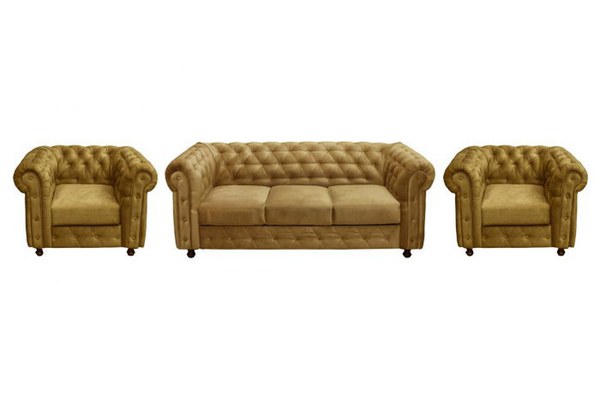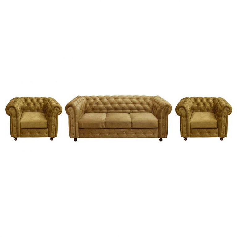 Set CHESTERFIELD 3-1-1, canapea extensibila 3 locuri si 2 fotolii fixe, galben