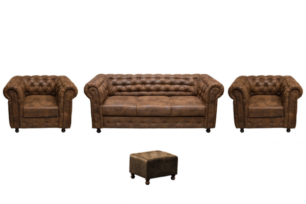 Set CHESTERFIELD 3-1-1, canapea extensibila 3 locuri si 2 fotolii fixe, maro - 1 Taburet Cadou