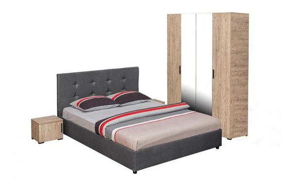 Set dormitor ECONO, 4 piese, pat 160x200 cm, dulap 4 usi, 2 noptiere, sherwood + gri