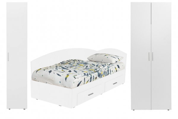 Set dormitor modular ALMA, 3 piese, pat de colt 120x200 cm, colt interschimbabil, dulap 2 usi, dulap 1 usa, alb