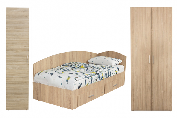 Set dormitor modular ALMA, 3 piese, pat de colt 120x200 cm, colt interschimbabil, dulap 2 usi, dulap 1 usa, sonoma deschis