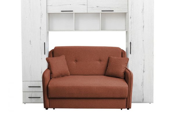 Set dormitor tineret YASMIN M1, 3 corpuri, alb Elvetia, 238x50x200 cm + Canapea GALA extensibila, 2 locuri, caramiziu, 143x98x98 cm