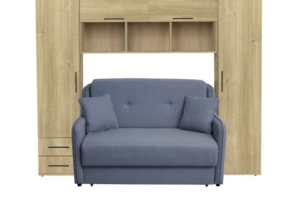 Set dormitor tineret YASMIN M1, 3 corpuri, stejar Belfast, 238x50x200 cm + Canapea GALA extensibila, 2 locuri, albastru, 143x98x98 cm