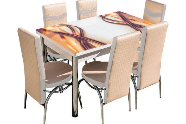 Set Lara, masa extensibila cu 6 scaune, crem panglica, 130 165x80x79 cm