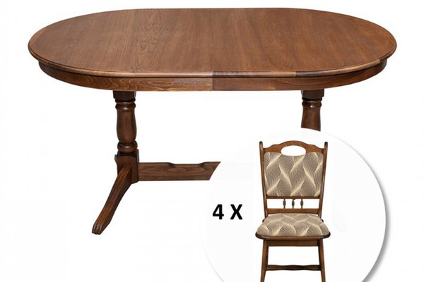 Set masa extensibila EUROPA ovala cu 4 scaune FLANDER stofa print 07, lemn masiv, nuc, 160 240x90x70 cm
