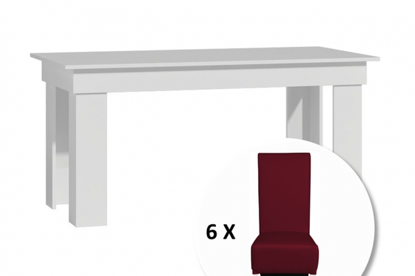 Set masa MONTILLA dreptungiulara cu 6 scaune VANESSA, alb + piele ecologica bordo, 160x80x75 cm