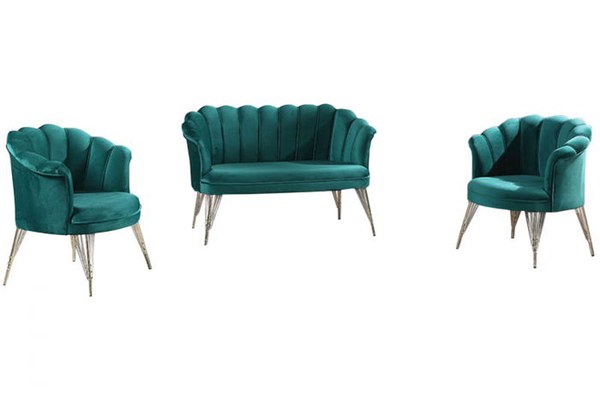 Set PAPATYA 2-1-1, canapea fixa 2 locuri, 2 fotolii fixe, verde