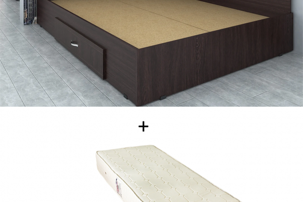 Set Pat de colt, cu sertar lateral pe role, wenge + Saltea superortopedica, 90x200 cm