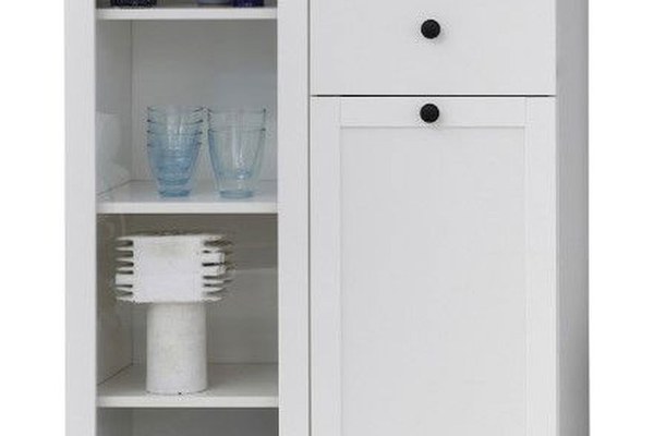 Vitrina joasa BRANDSON, 2 usi, 2 sertare, geam, alb, 81x41x129 cm