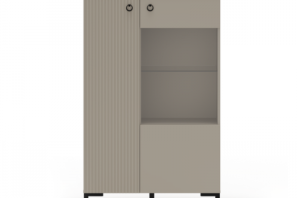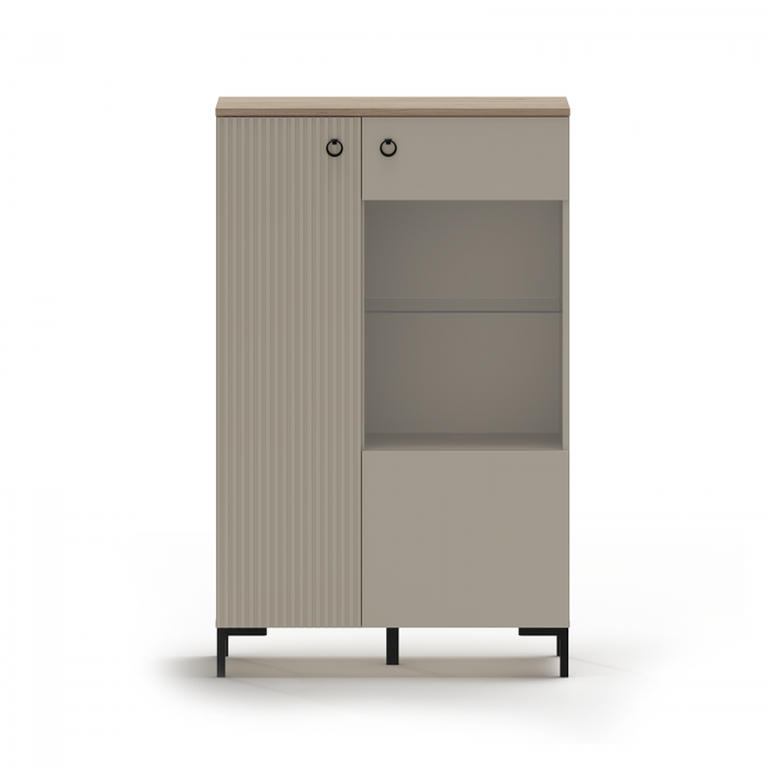 Vitrina joasa DOMINICA, 2 usi, geam, taupe + stejar silverjack, 85,5x41x137 cm