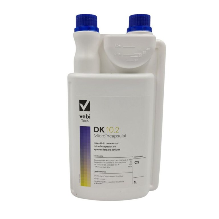 Draker 10.2 – Insecticid Concentrat Microîncapsulat Draker 10.2 este un insecticid lichid concentrat microîncapsulat pe baza de apa cu actiune rapida si reziduala împotriva unui spectru larg de insecte zburatoare si târâtoare. Formula sa inovatoare asigura o protectie de lunga durata si este ideala pentru utilizare profesionala sau casnica. Compozitie: Cipermetrina 10% Tetrametrina 2% Piperonil Butoxid (PBO) 10% Insecte tinta: Gândaci furnici purici paianjeni plosnite capuse pestisori de argint acarieni Muste tauni tântari musculite viespi Invadatori ocazionali si insecte din depozite ✔ Caracteristici cheie: Formulare microîncapsulata pentru eliberare treptata a substantelor active Efect de soc si actiune reziduala de pâna la 2-3 saptamâni Fara miros nu pateaza nu afecteaza plantele Nu contine solventi Domenii de utilizare: Locuinte hoteluri scoli spitale cladiri publice Depozite industrie alimentara transport în comun Grajduri crescatorii peluze garduri vii Instructiuni de aplicare: Se prepara solutia în functie de tipul suprafetei (vezi doze mai jos). Se aplica cu pompe de stropire pe suprafete precum pereti colturi plinte sub mobilier spatele aparatelor electrocasnice etc. Pentru exterior: aplicati pe perimetru pereti ferestre gunoaie garduri vii. În ferme sau grajduri scoateti animalele înainte de aplicare si aerisiti înainte de a le readuce. Doze recomandate: Suprafete neabsorbante: 5 – 10 ml / litru apa Suprafete absorbante (pereti nefinisati): 10 – 20 ml / litru apa Muste si gândaci: 10 – 30 ml / litru apa Ambalaje disponibile: 1 litru Precautii: Nu utilizati în prezenta alimentelor sau a animalelor Purtati echipament de protectie în timpul aplicarii A se pastra la loc uscat ferit de lumina si surse de caldura Draker 10.2 este solutia completa si eficienta pentru combaterea si prevenirea insectelor daunatoare cu efect de durata si protectie sigura pentru mediul înconjurator.