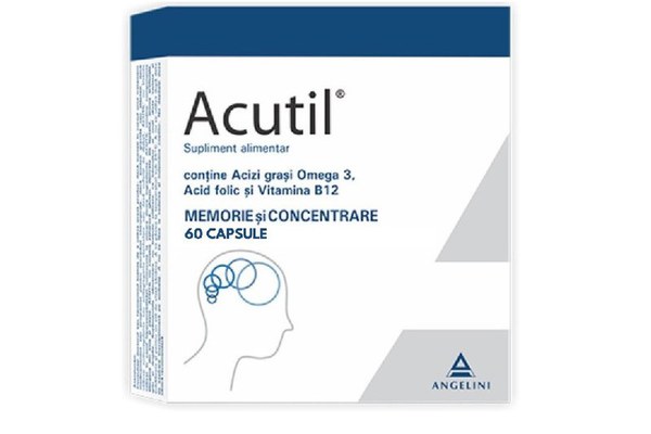 Acutil x 60cps - Acutil este un supliment alimentar care contine acizi grasi nesaturati Omega 3, cat si extract de Ginko Biloba, fosfatidilserina, vitamina E, acid folic, vitamina B1
