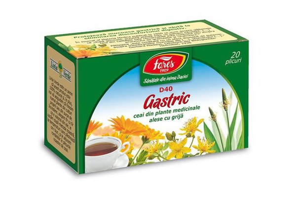 Ceai gastric FARES - Ceaiul gastic are efecte: cicatrizant, antiinflamator si protector al mucoasei gastrice.