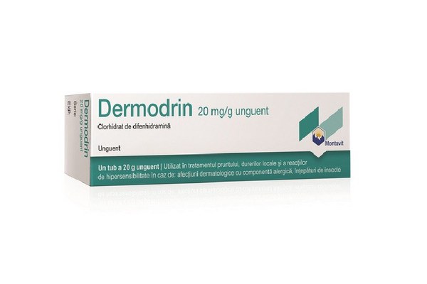 Anunt actualizat: 01 Sep, 2025 06:36 Descriere Dermodrin unguent face parte din grupa antihistaminice pentru uz topic.