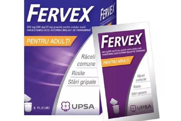 Produs utilizat in tratamentul simptomatic al febrei, obstructiei nazale si in rinofaringite acute la adulti.