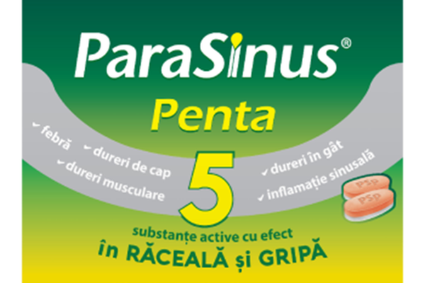 Parasinus Penta x 12 comprimate - Amelioreaza simptomele răcelii şi gripei: reduce febra, calmează durerile de gât, de cap si musculare, reduce congestia nazală.