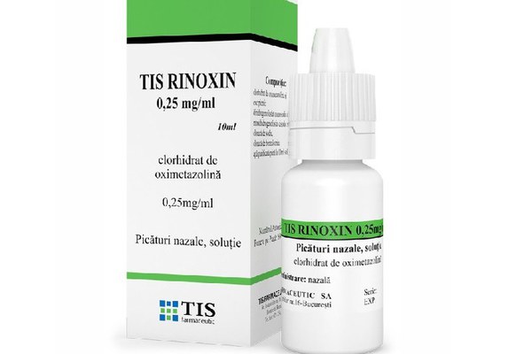 Rinoxin 0,25mg/ml x 10ml picaturi nazale (Tis) - Rinite si sinuzite acute si cronice alergice, rinite si sinuzite acute si cronice virale, catar tubar, congestie nazala si sinusala.