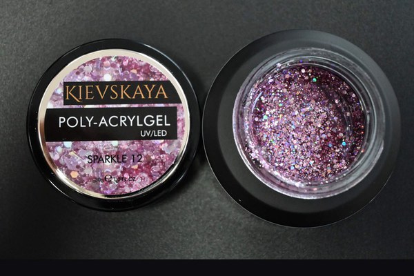 Poly-Acrylgel Sparkle Kievskaya 30gr-SPARKLE12 - SPARKLE12 - POLYGEL KIEVSKAYA - Polygelul oferă cele mai bune proprietăți ale gelului și acrylului combinate într-un singur produs. Gelul ușor, Poly UV/LED, nu solicită unghiile dumneavoastră. Este flexibil