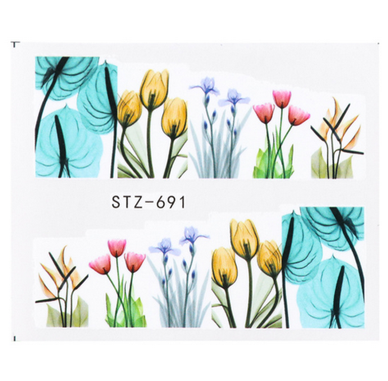 Tatuaj decor unghii STZ-691 - MOD DE APLICARE:Departati modelul de pe tipar, inmuiati in apa pentru 10-20secunde, lipiti pe unghie apoi stergeti cu un servetel uscat zona pana ce tatuajul de fixeaza bine pe unghie.