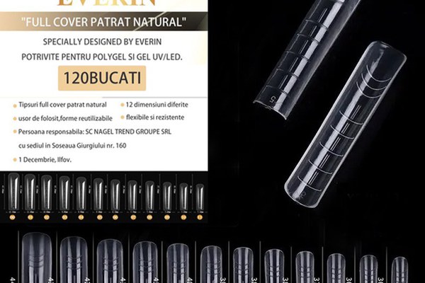 Tipsuri Full Cover Everin 120 bucati 12 marimi- Patrat Natural - SMR-24TK - SABLOANE SI TIPSURI - Tipsuri smart forms de calitate superioara. Pentru ca inlocuiesc sabloanele acestea usureaza si scurteaza foarte mult munca dumneavoastra.Cutia contine 120