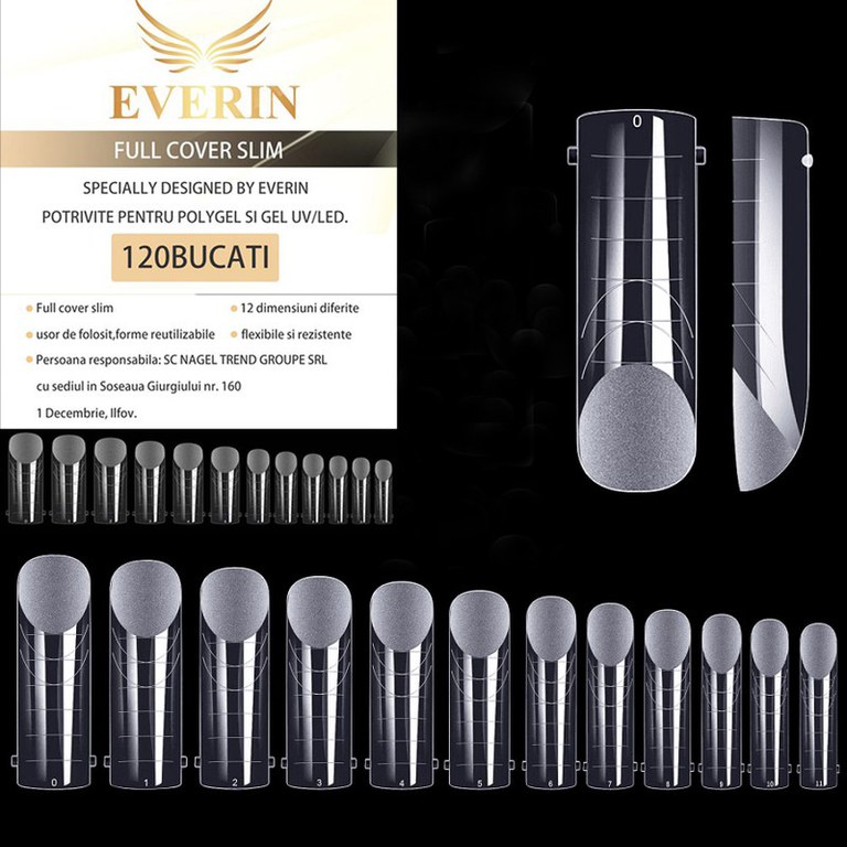 Tipsuri Full Cover Patrat Natural Slim 120 bucati- Everin - PN-SLIM