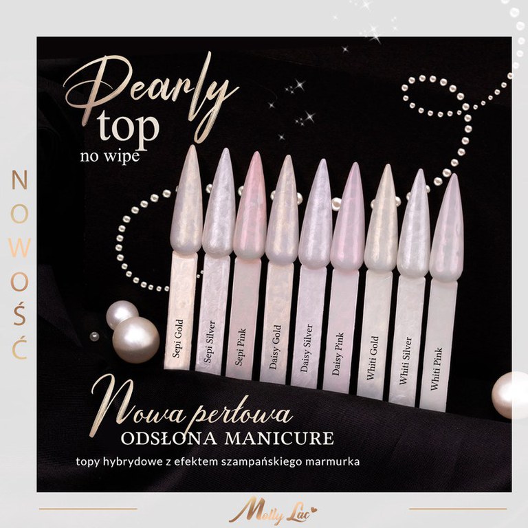Top Coat Pearly Molly Lac fara HEMA- WhitiGold 10gr - PEF-WP - PRIMER-BASE-TOP - Top coat sidefat cu efect de marmura MollyLac SepiSilver fara Hema 10g Îți place experimentezi modele noi în manichiură? Cauți un efect frumos, nobil și de șampanie/marmura?