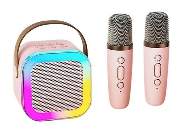 Set 2 microfoane pentru Karaoke cu boxa portabila K12 este soluția perfectă pentru petreceri, evenimente sau pur și simplu pentru distracție în familie în confortul casei tale. Setul boxa portabila si microfoane Karaoke K 12 vei transforma orice loc într-un club de karaoke personal, oferindu-ți și invitaților tăi o experiență de divertisment remarcabilă. Acesta include două microfoane wireless și o boxă portabilă cu funcții avansate de conectare, făcându-l ideal pentru petreceri, evenimente de familie, și sesiuni de karaoke acasă. Potrivit pentru o varietate de utilizări, de la petreceri de copii la evenimente sociale și seri de karaoke. Are un design compact și ușor de transportat, astfel încât să poți aduce muzica oriunde. Cu acest Set 2 Microfoane Karaoke cu boxa portabila este compatibil cu o gamă largă de dispozitive, prin tehnologia bluetooth, inclusiv smartphone-uri, tablete și laptopuri. Caracteristicile generale produsului: Conectivitate: Bluetooth, USB, slot pentru card microSD Sunet: Difuzor de înaltă calitate pentru un sunet clar și puternic Luminile RGB: Creează o atmosferă vibrantă și captivantă Autonomie: Baterie reîncărcabilă cu autonomie de aproximativ 2 ore, perfectă pentru sesiuni lungi de karaoke Design Ergonomic: Ușor de ținut și utilizat pentru perioade lungi Wireless: Permite libertate de mișcare, fără cabluri enervante Comenzi multiple atat pentru boxa cat si pentru microfoane Lumina RGB Putere de 5W Interval frecventa 90Hz – 18Hz Putere incarcare DC 5V Baterie boxa Li-ion 1300mAh Redare sunet AUX, Bluetooth, Card TF(nu este inclus) Posibilitate de a schimba vocile in unele amuzante Autonomie aprox. 2 ore in functie de utilizare Dimenisiuni: Boxa 9 x 9 x 7 cm si Microfon 14 x 2 cm.