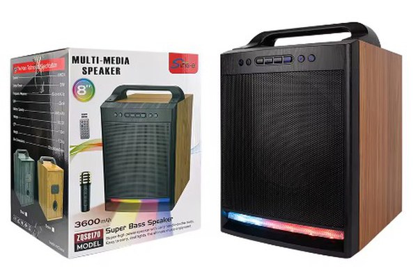 Boxa wireless ZQS-8170 oferă un sunet puternic și echilibrat, perfectă pentru petreceri, karaoke sau utilizare zilnică. Cu un difuzor de 8 inch și o putere de aproximativ 60W, redă clar atât bass-ul cât și înaltele. Dispune de conectivitate Bluetooth, permițând redarea muzicii direct de pe telefon, tabletă sau laptop. Include microfon wireless, ideal pentru karaoke sau anunțuri. Luminile RGB integrate adaugă un efect vizual spectaculos, sincronizat cu muzica. Designul pătrat, modern și portabil, o face ușor de transportat. Suportă USB, card SD, AUX și FM radio pentru redare multiplă. SPECIFICAȚII TEHNICE: Model: ZQS-8170 Tip: boxă wireless portabilă Putere: 60W Difuzor: 1 x 8” Conectivitate: Bluetooth / USB / SD / AUX / FM Microfon: inclus (wireless) Efecte luminoase: RGB colorate Alimentare: baterie reîncărcabilă / 220V Autonomie: 4–6 ore (în funcție de volum) Timp de încărcare: 3–4 ore Utilizare: interior / exterior, karaoke, petreceri