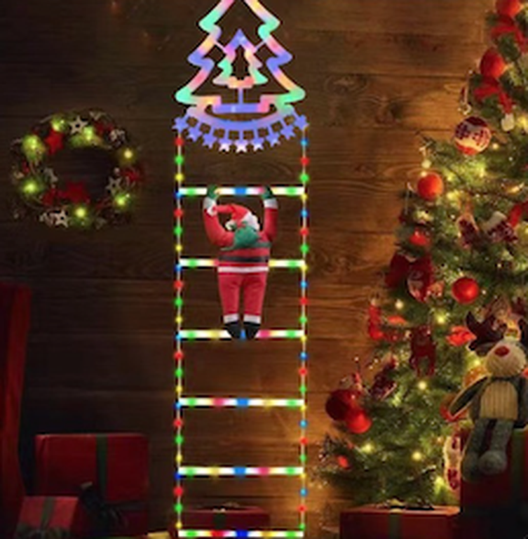 Decoratiune Scara lui Mos Craciun luminoasa Led multicolor 25x160 cu model BRADULET