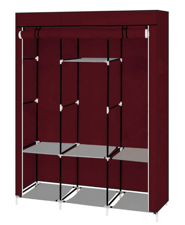 -Asamblarea nu necesita suruburi -cadru usor, poate fi mutat usor -usi cu fermoar Sifonierul mobil poate fi foarte util pentru depozitarea hainelor sezonale, dar poate fi utilizat si in viata de zi cu zi. Se numara printre putinele dulapuri, care sunt utile atat in casa de vacanta, mansarda si garaj, cat si in oricare vestiar, garderoba, camera pentru copii si dormitor. Material: metal, plastic, textil Culoare: Visiniu Dimensiunile produsului: 170 x 130 x 45 cm
