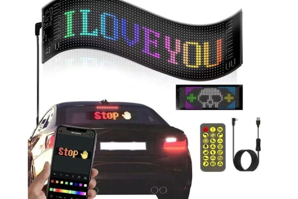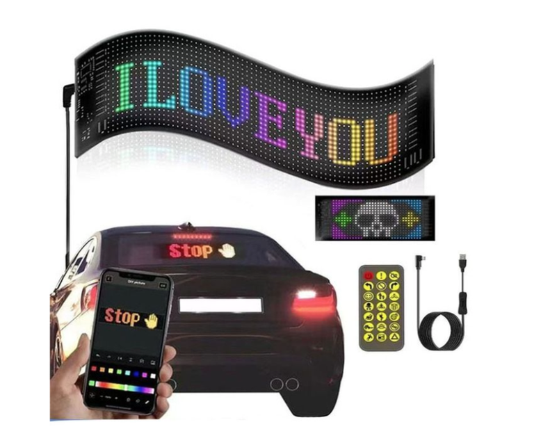 Ecran LED flexibil pentru masina control wireless prin aplicatia mobila alimentat prin USB 12x60