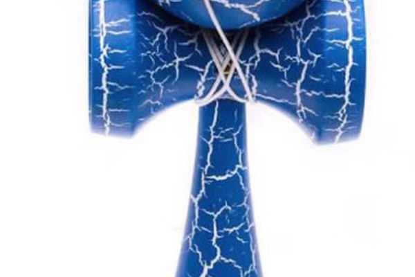 Kendama profesionala din lemn 18 cm model clasic cu design crapat culoare Albastru/Alb