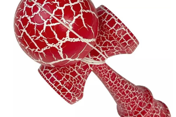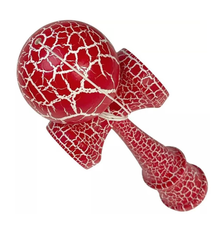 Kendama profesionala din lemn 18 cm model clasic cu design crapat culoare Rosu/Alb
