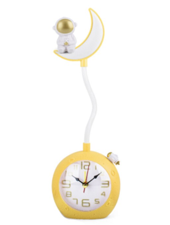 Lampa de birou C128 este recomandata a fi utilizata pe orice suprafata plana din camera copilului, oferind o atmosfera placuta si un design haios unic. Datorita flexibilitatii de care dispune, dispozitivul ofera posibilitatea de a regla cu usurinta directia si inaltimea lampii de citit. Caracteristici: Model: RD-C128 Functii: iluminare, ceas Putere: 10W Tensiune: DC5V Alimentare: cablu USB Alimentare ceas: 1 x baterie tip AA (nu este inclusa) Forma: luna cu astronaut Tip bec: LED Capacitate baterie: 1200mAh Timp de incarcare: 4-6 ore Timp de operare: 6-8 ore Mod comutator: tip buton Culoare: galben sau roz in functie de stoc Material: ABS Dimensiuni(L x l x h): 32 x 10 x 6 cm