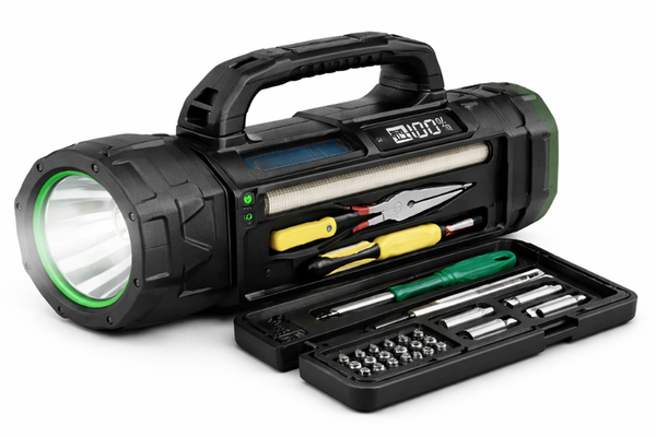 Lanterna multifunctionala COBRA CD-5515 este un dispozitiv complet, conceput pentru utilizari profesionale si activitati outdoor. Designul tip trusa scule integreaza un LED frontal puternic, panouri laterale COB pentru iluminare larga si compartiment cu unelte utile. Include functie de incarcare USB-C si acumulatori reincarcabili, oferind autonomie ridicata. Panoul solar incorporat permite incarcare alternativa, fiind ideal pentru camping sau urgente. Afisajul digital indica nivelul bateriei, iar constructia robusta asigura durabilitate in conditii dificile. Este alegerea perfecta pentru cei care cauta iluminare, functionalitate si utilitate intr-un singur produs compact si eficient. Specificatii: Model: Cb-5515 Brand: COBA Tip iluminare: LED frontal + panouri COB laterale Functii suplimentare: trusa unelte integrata Alimentare: acumulatori reincarcabili (inclusi) Incarcare: USB-C + panou solar Afisaj: digital (nivel baterie) Moduri iluminare: alb, rosu, albastru (in functie de mod) Material: ABS rezistent Design: tip trusa, cu maner ergonomic