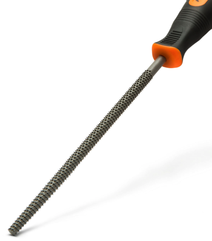 Raspila de calitate, 200 mm, cu maner cauciucat. Profil rotund, suprafata de lucru calita, ideala pt. prelucrarea lemnului. Manerul ergonomic, cauciucat, asigura comoditate si maxima siguranta in timpul lucrului. Este alegere perfecta si in cazul executarii colturilor interioare rotunde, sau arcuite . Rugozitate medie Sprafata de lucru rezistenta, calita Maner ergonomic, cauciucat Cu orificiu pt. suspendare Lungime totala: 32 cm Lungime activa: 20 cm Diametru pila: 8 mm Rugozitate: Medium