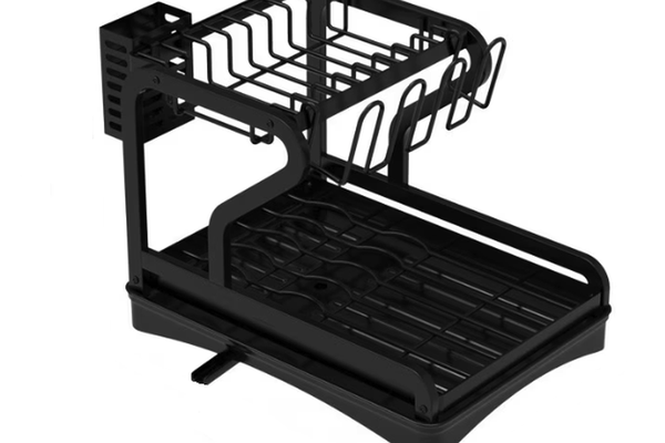 Scurgator vase cu suport de tacamuri si pahare negru 2 niveluri tava scurgere MZY 1139A